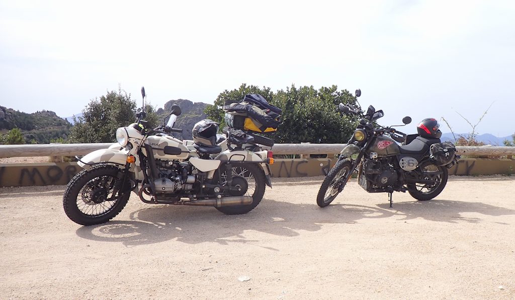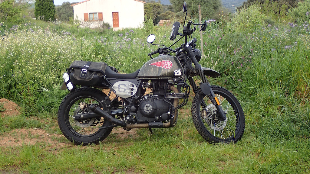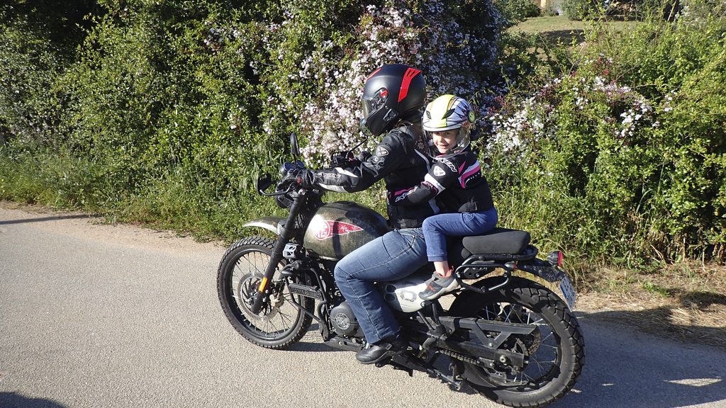 Bon, l’intérêt d’un tel engin étant surtout de trimbaler ma petite de cinq ans qui ne tient encore pas très bien à l’arrière d’un 2 roues. La Cati s’ennuyant ferme derrière ce tracteur, Laure a opté pour une indienne découverte en Mongolie. J’ai nommé, la Royal Enfield Himalayan avec une petite prépa carosserie pour la forme.