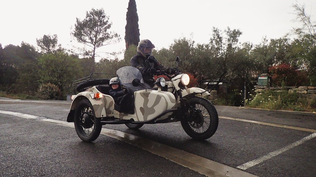 J’ai généralement une préférence pour les véhicules possédant autant de roues que de cylindres, avec un bonus lorsque ces derniers sont de travers. Ce fut le cas sur la Transalp, puis la Bulldog, et l’inégalable MT01. Un petit passage sur la T700 avec ses deux cylindres au garde-à vous ne m’a pas donné entière satisfaction. Afin de ne pas mourir idiot, j’ai donné sa chance à une bestiole issue de l’ère soviétique pré-Poutinien possédant 3 roues et deux cylindres se faisant la gueule de chaque côté d’un cadre excentré sur la gauche. J’ai nommé un Ural Ranger 750 à carbu de 2013 affectueusement surnommé « Pout-Pout ».