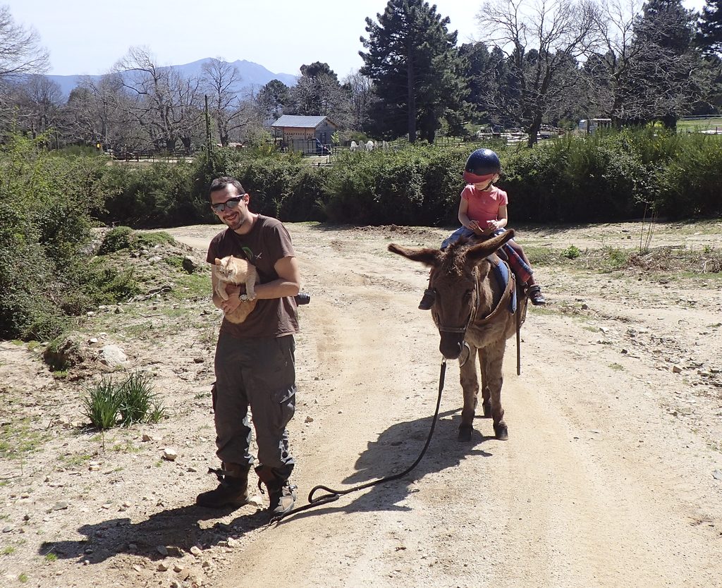 Dernier jour, camping à la ferme avec balade à dos d’âne et Pikachu, le chat le moins stressé du monde.