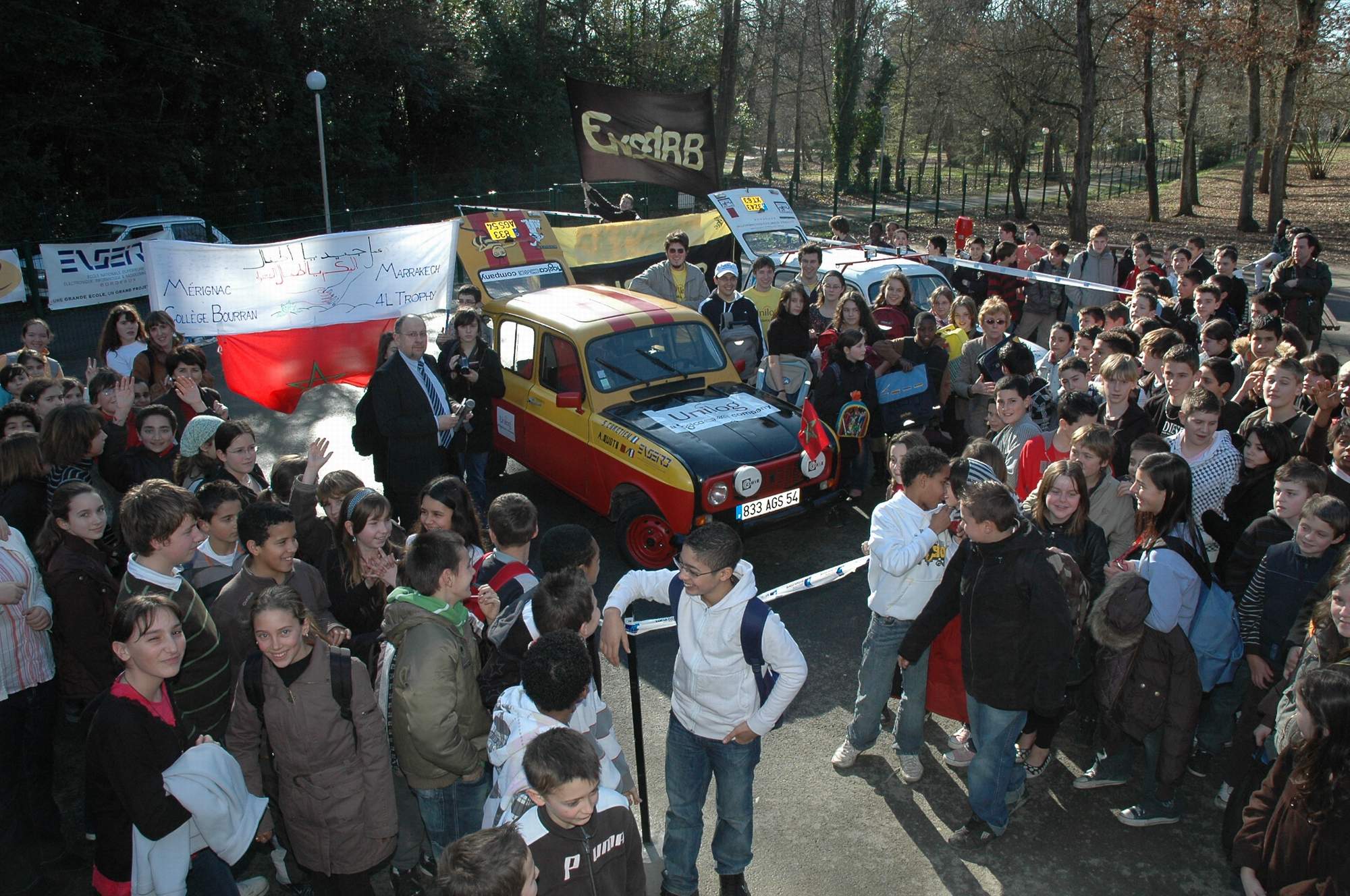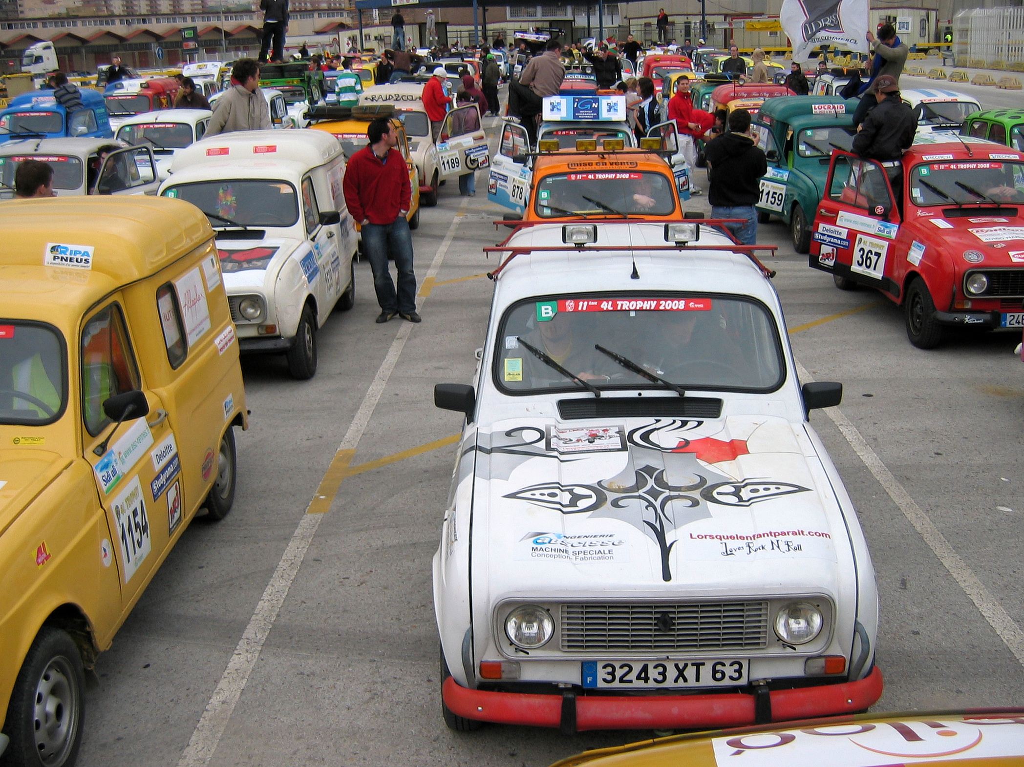 14 Février 2008. Voiture chargée, niveaux faits, dernières vérifications effectuées, il est temps de se rendre à Bordeaux centre pour un dernier contrôle technique effectué par l’organisation. Arrivée au dernier carrefour à 500m de la ligne de départ, la voiture cale, impossible de la redémarrer. Je fais un rapide check-up. Batterie OK, essence OK. Je débranche l’anti-parasite d’une bougie et le tend à mon collègue. J’essaye de démarrer, ce dernier fait un bon en hurlant. Allumage OK. Tant pis, on sort et on pousse… jusqu’aux stand devant un mécanicien hilare. Il trouve rapidement la panne, condensateur d’allumage KO. Justement le truc qu’on avait pris avant de partir ! Cette fois c’est bon, on y va !