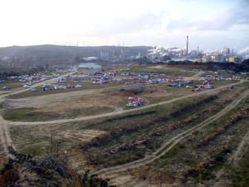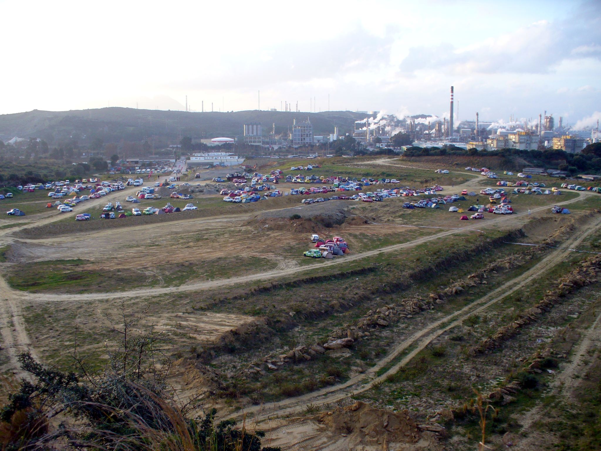 On avale les kilomètres à la vitesse de 110km/h sans trop chauffer. On s’arrête vers Burgos dans un petit hôtel déjà remplis de 4L trophistes et on reprend la route le lendemain pour atteindre Algeciras au sud de l’Espagne en fin d’après-midi. On bivouaque en compagnie de 1200 autres voitures dans une ancienne mine. Le lendemain, le vent se lève. On en profite pour faire quelques courses : lunettes de ski pour le sable, grille de protection pour le radiateur et un bon gros jambon. Le soir, malgré l’avis de tempête, on embarque sur le bateau direction Tanger. La traversée est mouvementée mais ça passe.