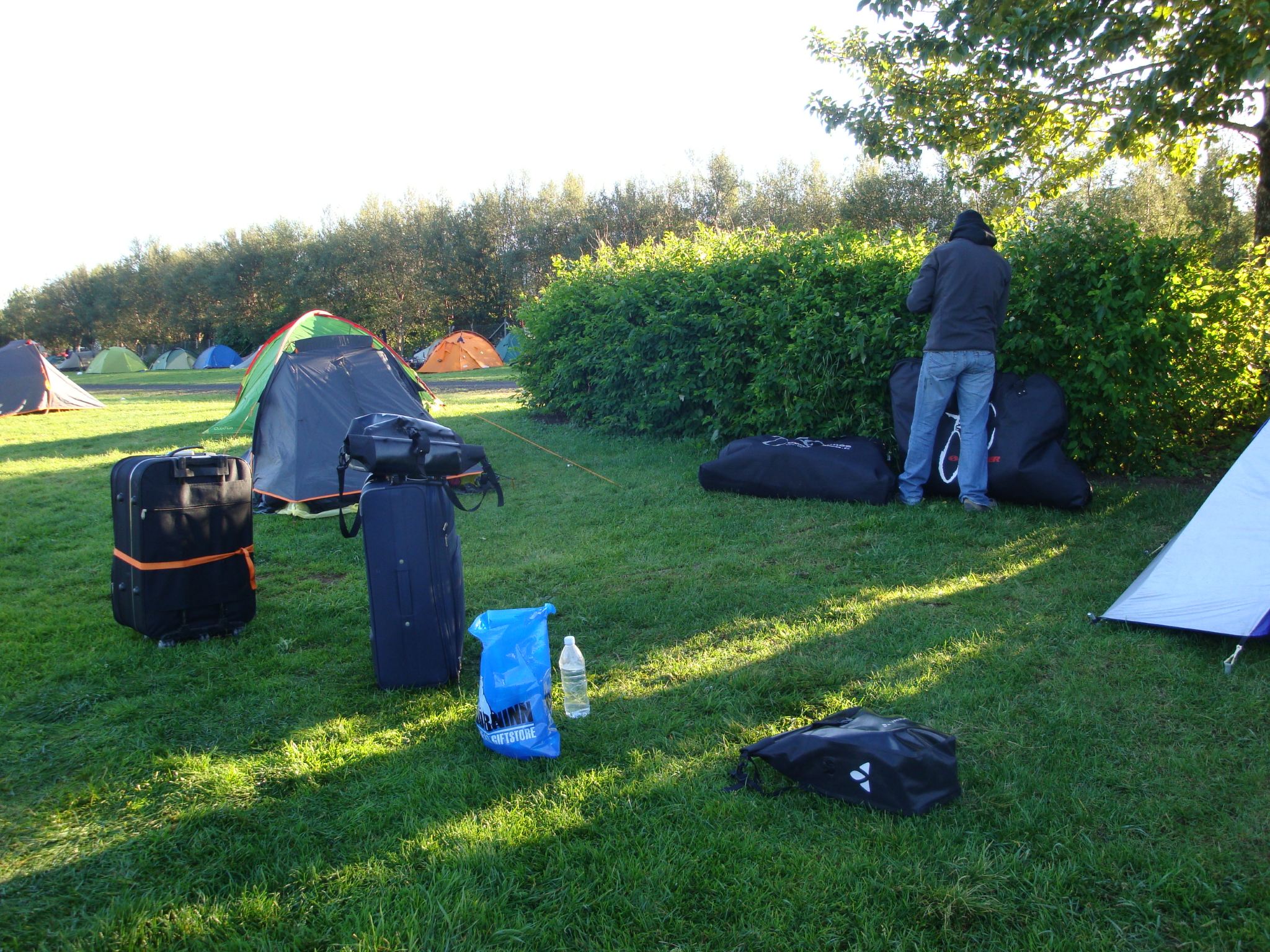 Il fait froid. Il pleut. Il vente. Voilà qui résume la triste météo de la journée. Dans la nuit, la pluie a formée une bassine d’eau au dessus de nos têtes car on avait mal orienté la tente.
