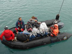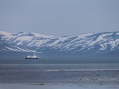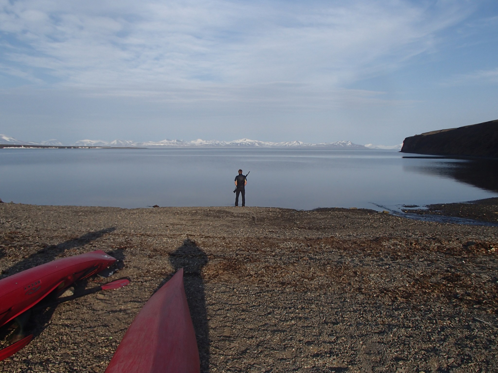 Après à peine 4h de sommeil, Gwen, le guide nous réveille. Une navette vient nous chercher pour nous emmener au port. A bord du bateau, il nous fait un autre briefing, sur les danger de l’ours polaire cette fois. Touristes citadins attirés par les brochures publicitaires, nous comprenons rapidement que l’Ours n’est pas une attraction touristique mais un réel danger avec lequel il faut apprendre à vivre. Port du fusil obligatoire pour l’organisateur, tour de garde la nuit, stockage de la nourriture à l’écart du camp, ne jamais s’éloigner du groupe. Ces règles vont rythmer notre vie durant la prochaine semaine.