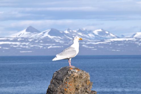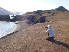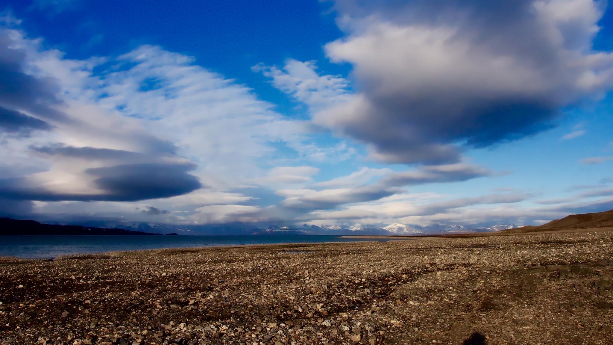 Une mer d’huile, un grand soleil, les petits goélands qui sortent de leur nid, cette journée est magnifique. Nous débarquons sur une plage de galets pour manger et enchaînons sur une balade le long de la crêtes où nous apercevons notre camp du soir et quelques bélugas remonter le fjord.