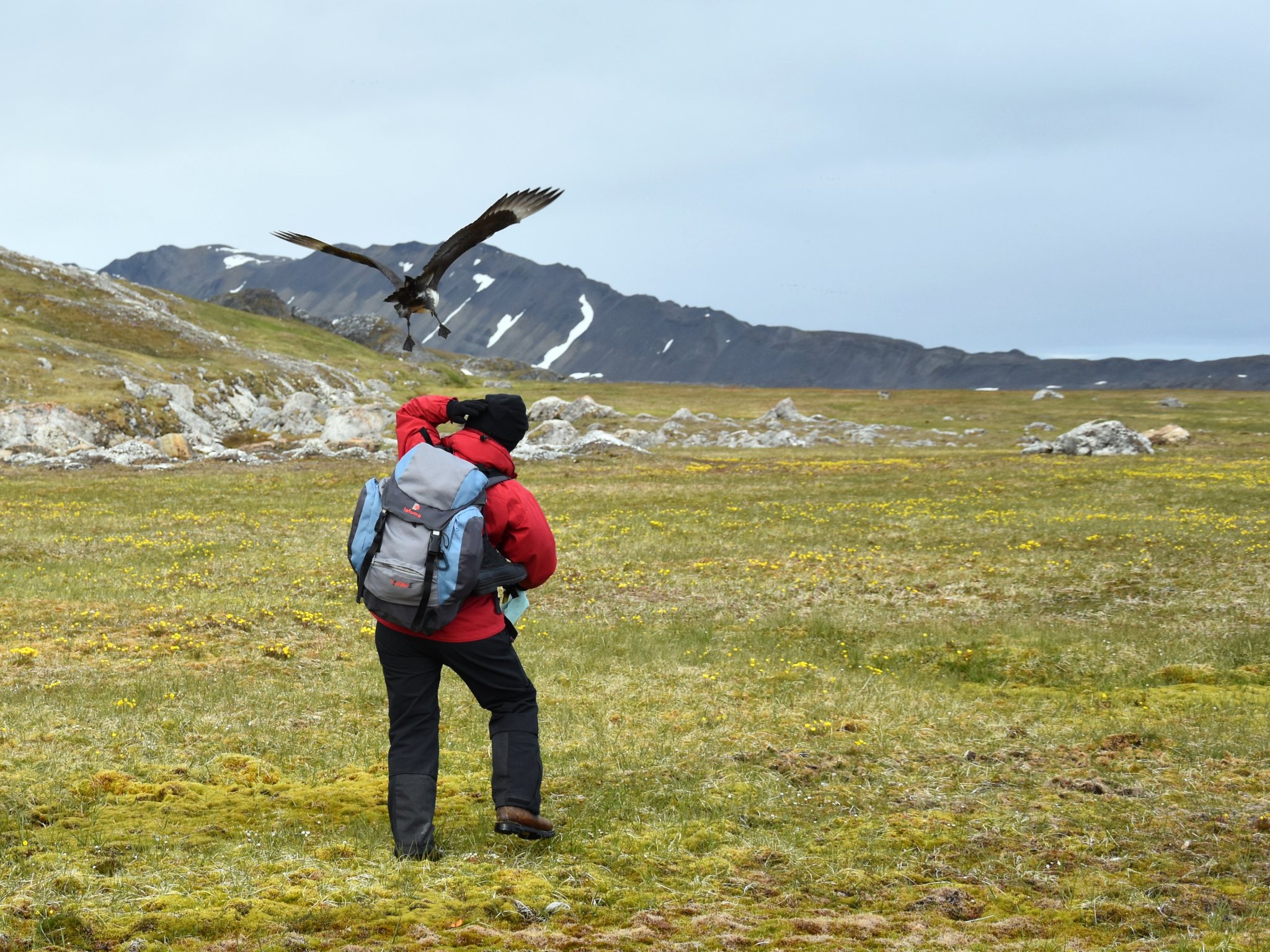 Sur le chemin du retour, nous nous faisons attaquer par des labbes parasites, oiseaux de taille moyenne près à défendre son nid coûte que coûte. Ces derniers n’hésitent pas à attaquer aussi les rênes, voir les ours qui s’approche trop près de leurs petits.