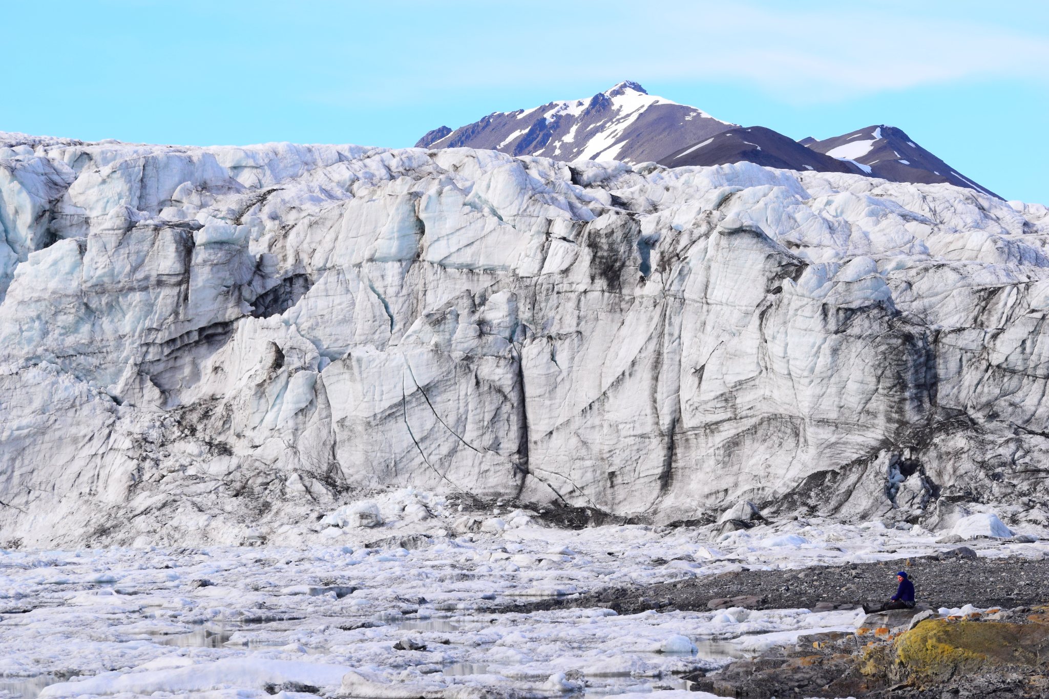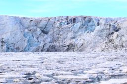 Nous parcourons quelques centaines de mètres à travers les restes de banquise pour débarquer au bord du glacier et faire une petite marche. Le front du glacier racle le sol comme le ferait un bulldozer de plusieurs millions de tonnes, arrachant la roche et retournant le terre. Des rivières souterraines émergent pour se déverser dans la mer, un phoque annelé nous accompagne en longeant la rive. Puis retour aux kayak avec lesquels nous retournons au camp de base en longeant le mont Protector qui protège depuis des siècles les marins des caprices de l’océan arctique.