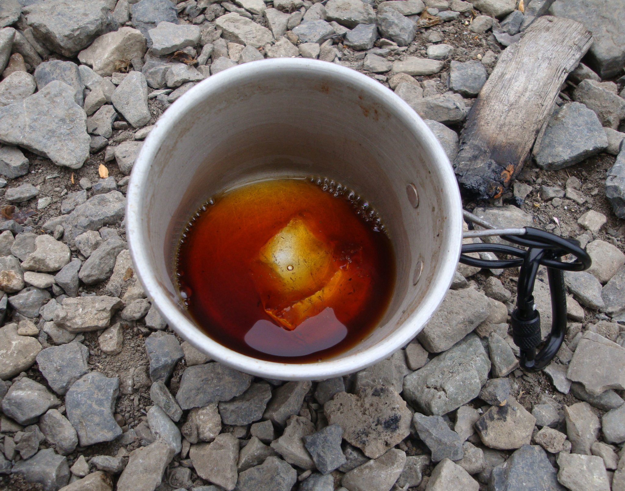 Laure prend le premier tour, Je prend le second. Le temps se rafraichit et une légère bruine empli l’atmosphère. Au début de ma garde, le feu est mourant. Je passe la première heure à essayer de la raviver et bricole un entonnoir à vent à base de cailloux. Cela marche tant qu’il y a du vent, mais il finit par tomber et le feu par mourir. Les tours de garde sont le seul moment où l’ont peut se retrouver seul. On en profite pour méditer, contempler le paysage ou faire caca.