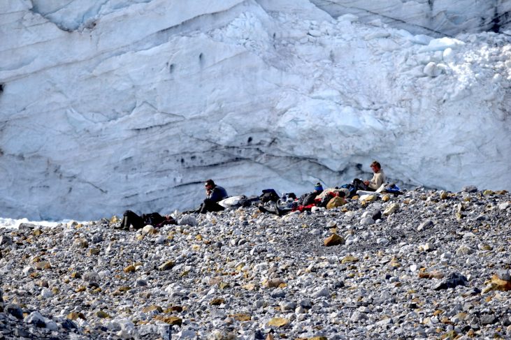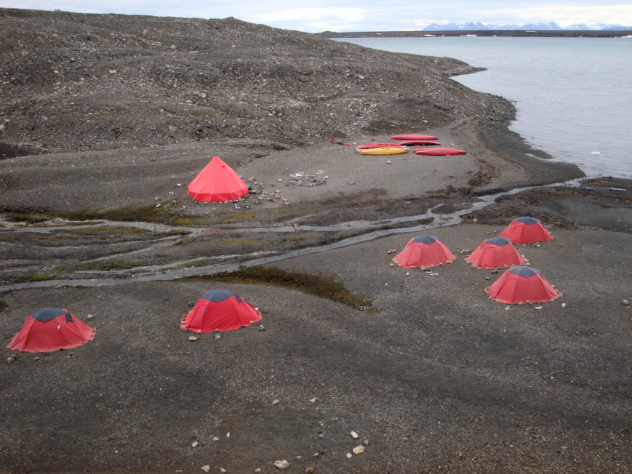 Réveil pour une autre journée magnifique et un retour sur le premier camp d’Ymerbukta. L’arctique habituellement si inhospitalière se montre très clémente avec nous.