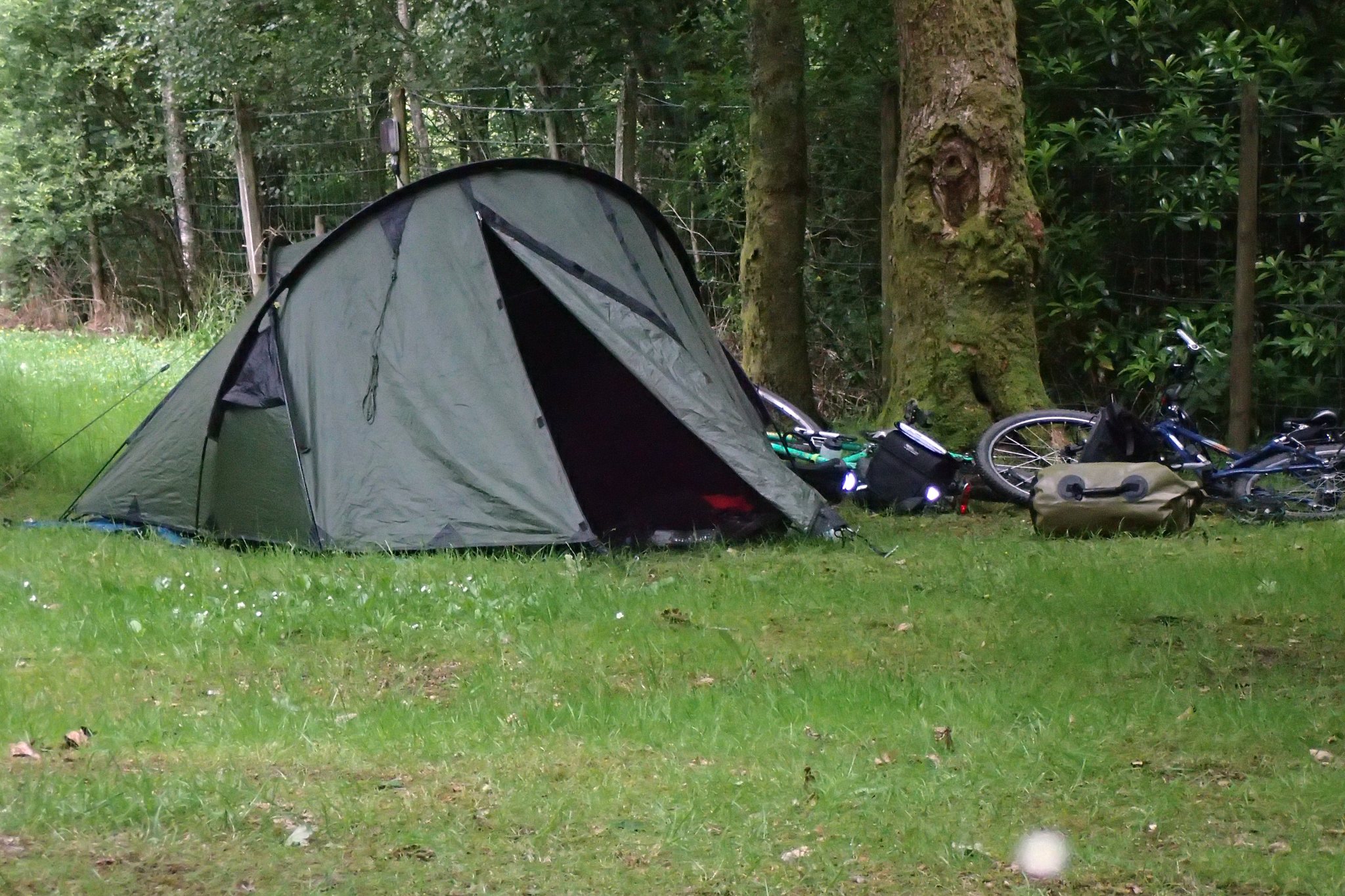 Nous arrivons à Fort Williams sous la pluie avec un jour d’avance. Quelques kilomètres de vélo plus tard, trempés jusqu’aux os et le moral sérieusement entamé, nous arrivons au camping.