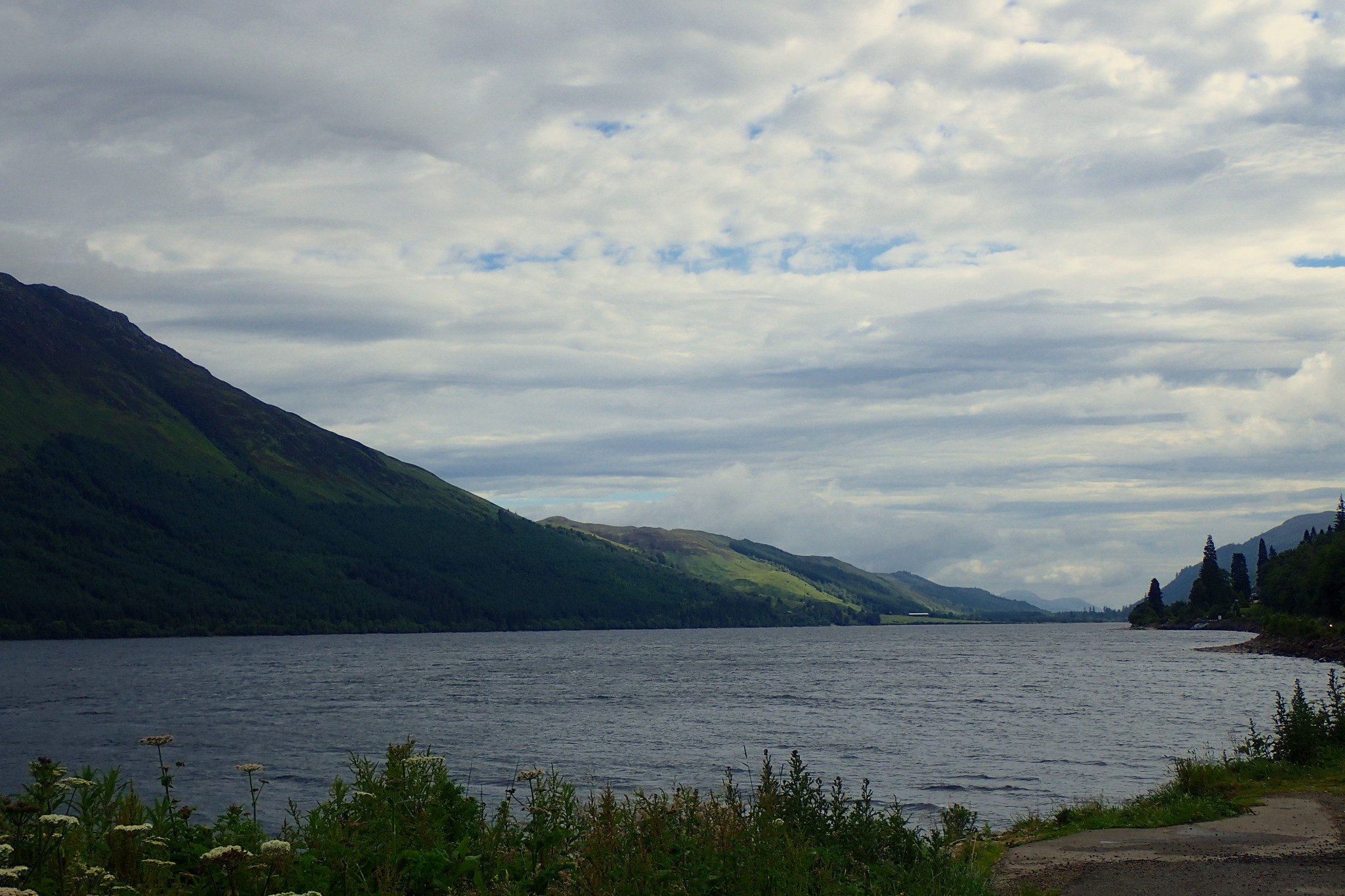 De retour sur la rive ouest, bitumée et beaucoup plus simple. On cherche sans succès un camping à Inveruglas. On continue jusqu’à Ardlui où l’on trouve un camping pas terrible au bord de la route. Ca fera l’affaire. En s’installant on retrouve nos amis les midges.
