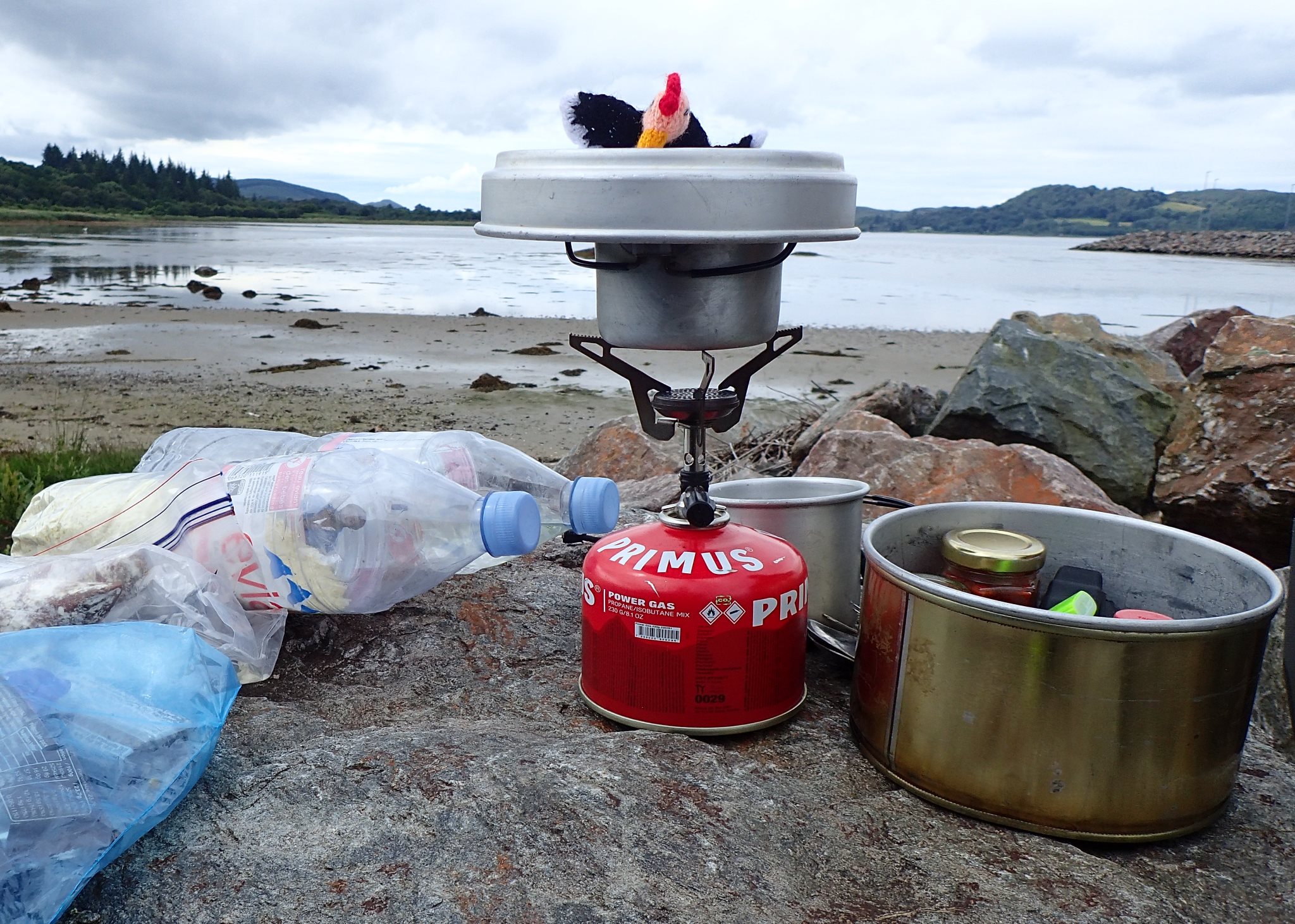 Nous arrivons finalement à Brodick le soir et se pose un dilemme cornélien : prendre ou ne pas prendre le ferry. On trouve finalement un petit camping sur l’île, peut-être le meilleur de ce séjour, perdu dans une vallée, une rivière serpente au milieu, des perdrix se cachent dans les hautes herbes. et un groupe d’ados a choisi d’y passer le week-end. A défaut d’être propre au vu des détritus entourant leurs tentes, il ne sont pas très bruyants. Un bon cadrage permettra de faire abstraction de cette verrue au milieu de ce cadre idyllique.
