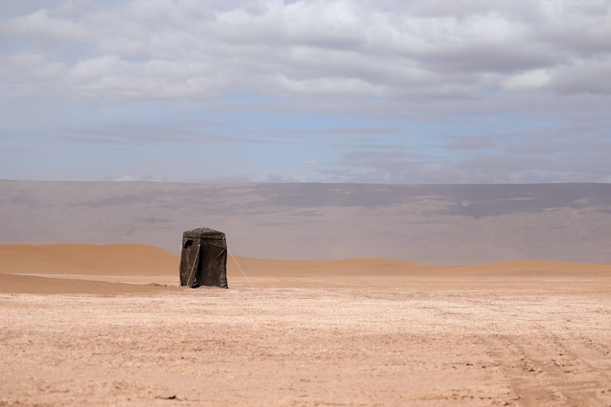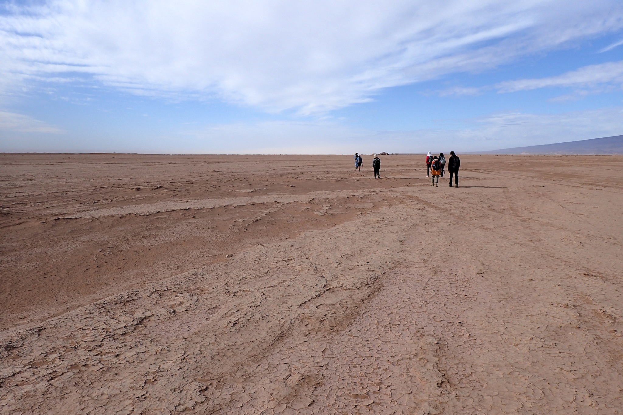 Dernier jour de marche. La nuit a été bonne et réparatrice. Les jours se ressemblent, difficile à présent de les distinguer. Nous mangeons dans les dunes. Un vent léger nous rafraîchit. S’en suit un gigantesque plateau qui s’étant sur des kilomètres. C’est un lac asséché. Les marcheurs sont fatigués. Des tensions s’installent dans le groupe.
