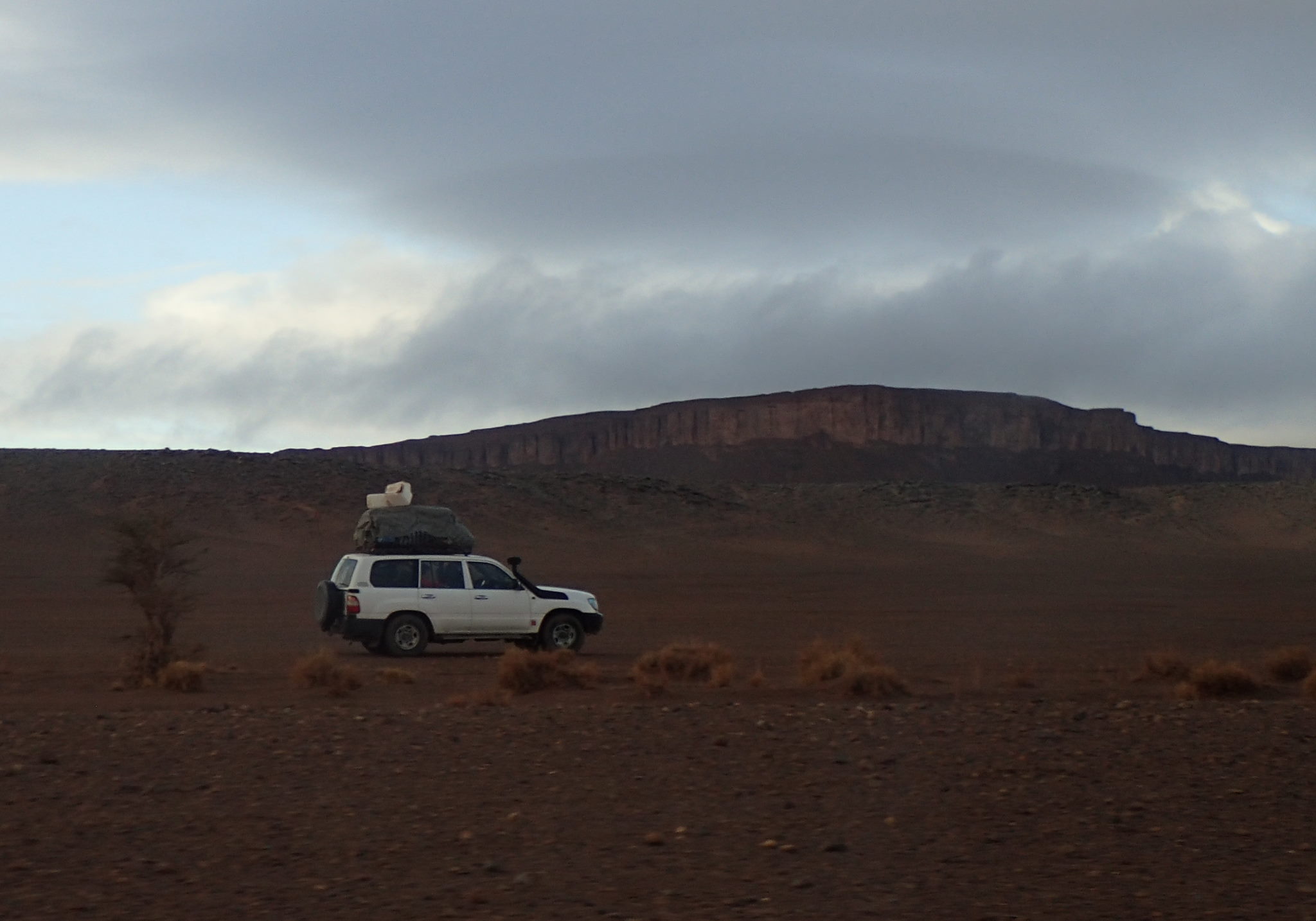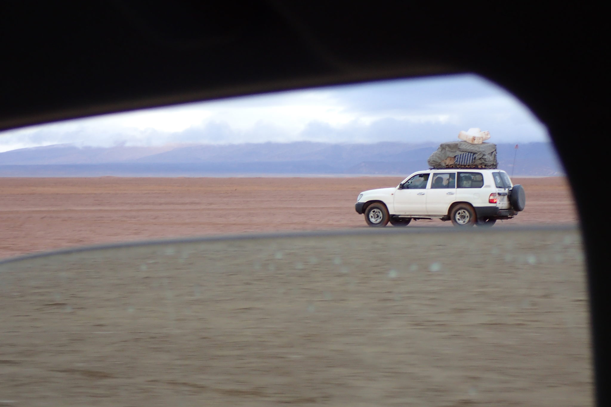 Il a plu cette nuit. Entre la fatigue, les tensions dans le groupe et la frayeur d’hier, cette journée de transfert arrive au bon moment. Nous quittons l’équipe chamelière qui charge le matériel sur des 4×4 et allons marcher un petit peu. La pluie mêlée à la terre argileuse créE une boue infâme qui colle au chaussures. Les 4×4 nous récupèrent au bout d’1/2h.
