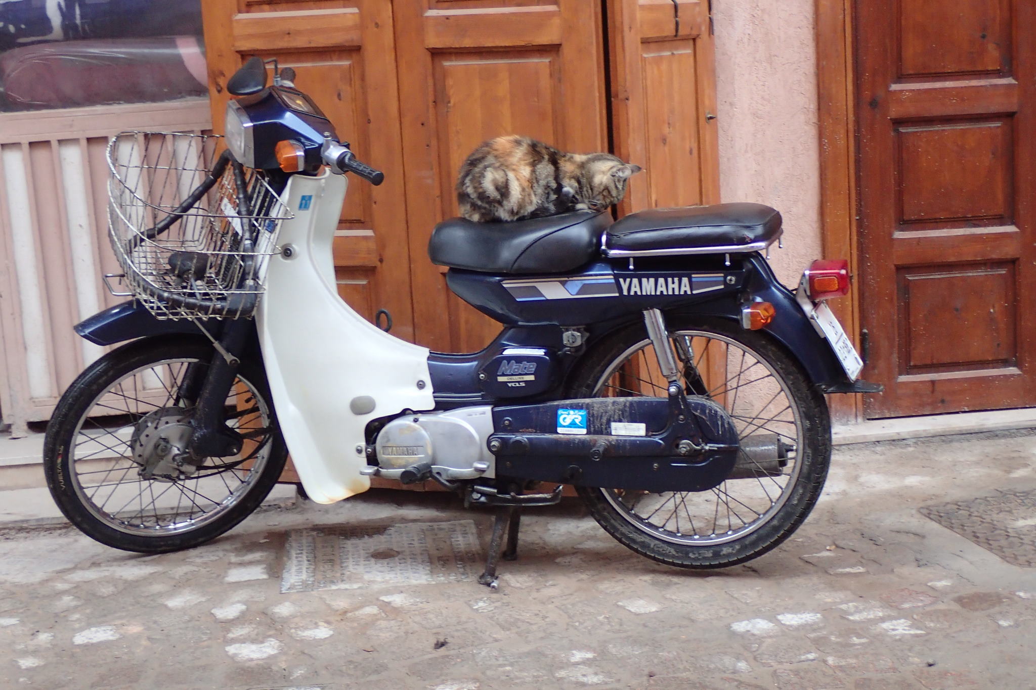 Nous faisons une pause dans un jardin public pour s’éloigner de la foule et de l’agitation du souk. Nous repérons sur le plan le souk des maroquiniers et repartons en quête d’un bout de peau. L’un d’entre eux nous montre son atelier à l’étage mais il ne possède que des chutes trop fines. Nous finissons par trouver notre bonheur dans le souk profond, voire très profond. L’homme aligne des mots dont certains sonnent français et semblent former des phrases. Des sourires et des gestes aboutissent finalement à une transaction. 50 dh pour un morceau de 30 cm sur 40. Probablement hors de prix là-bas mais toujours bien moins cher qu’en France. Et la satisfaction d’être allé le chercher à la source.