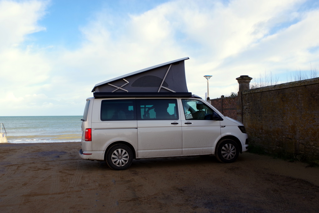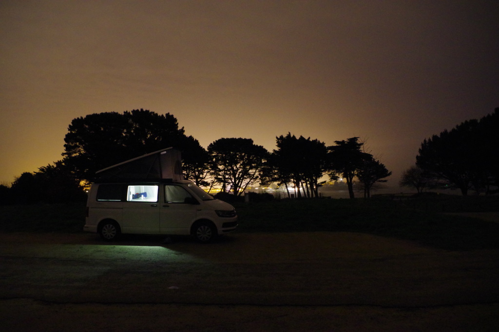 C’était donc un de ces jours là que nous partîmes avec un van de location, un WW California tout confort. Et à la fin de ce jour, nous dormîmes à la pointe de Kerpentir (Locmariaquer) à l’orée de la Bretagne, sous un ciel menaçant mais sec pour dire au revoir à un travail qui ne nous convenait plus et s’imaginer une nouvelle vie dans le sud à l’été prochain.