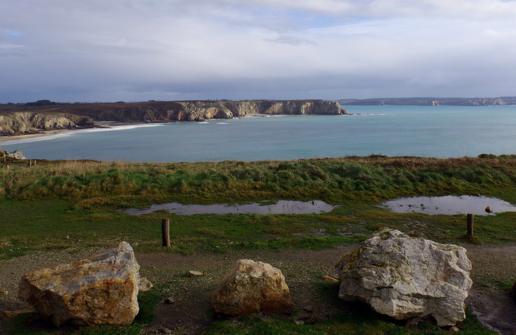 Passage à Carnac pour voir des cailloux mouillés et visite rapide de la citadelle de Concarneau sous de l’eau qui mouille, un lundi où tout est fermé. Dodo à la chapelle Notre-Dame de Penhors après avoir fait 2 ou 3 parkings interdits au camping car.