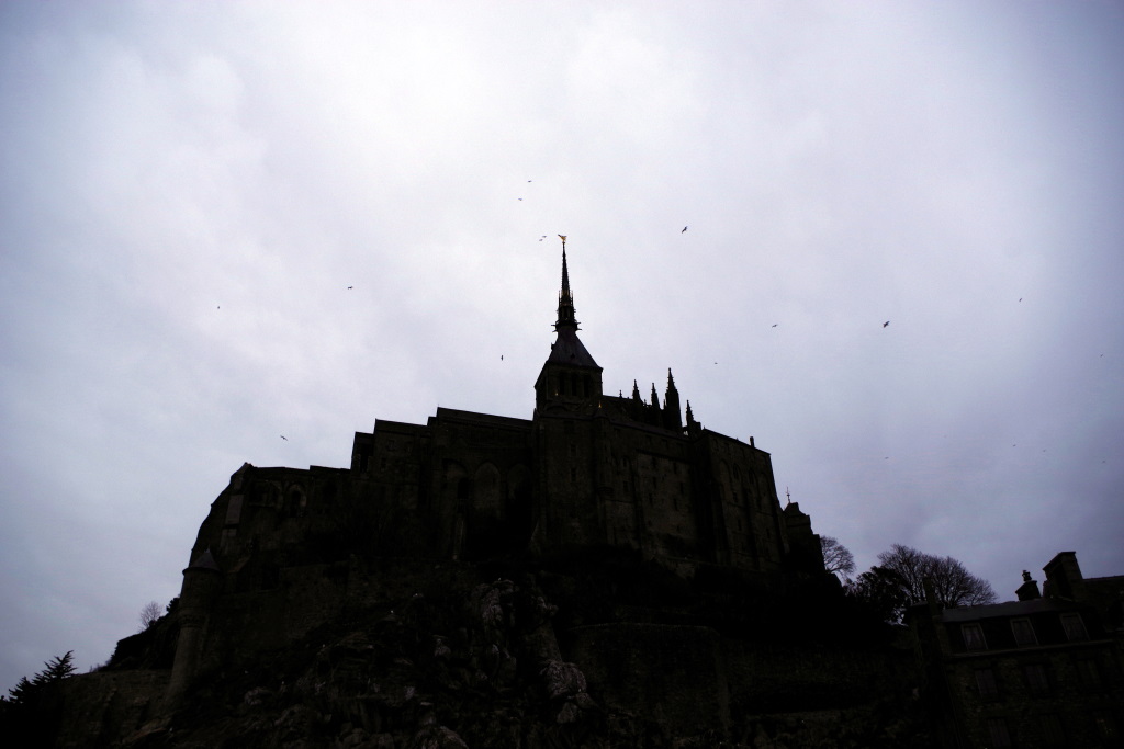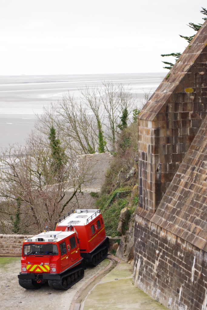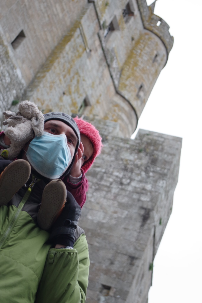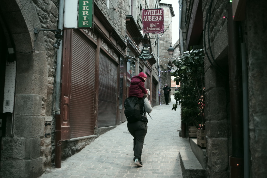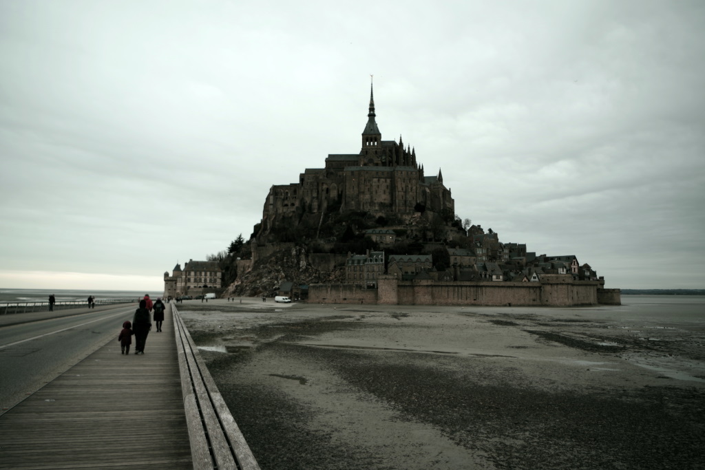Arrêt au Mont Saint-Michel (le château de Pépé d’après la petite…) déserté par le covid et l’hiver avec une Choupi toujours grincheuse et pas pratique. Dodo derrière l’église de Courtils.
