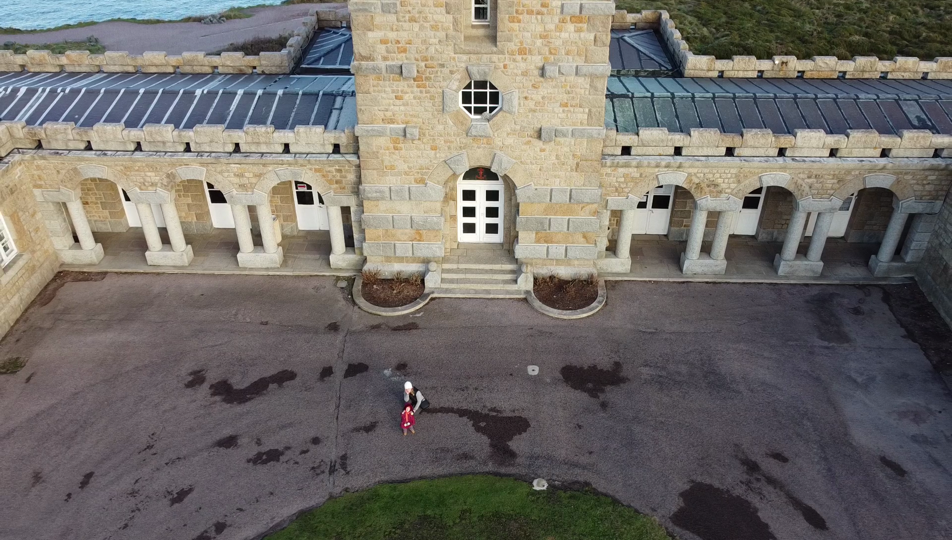 Ciel nuageux mais pas de pluie. Je tente une sortie du drone… Ah bah non. L’abbaye est privée et je ne suis pas très motivé pour aller demander l’autorisation aux propriétaires. Et de toute façon il se met à pleuvoir.