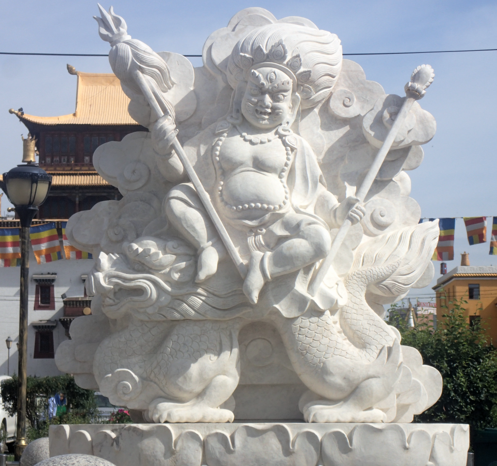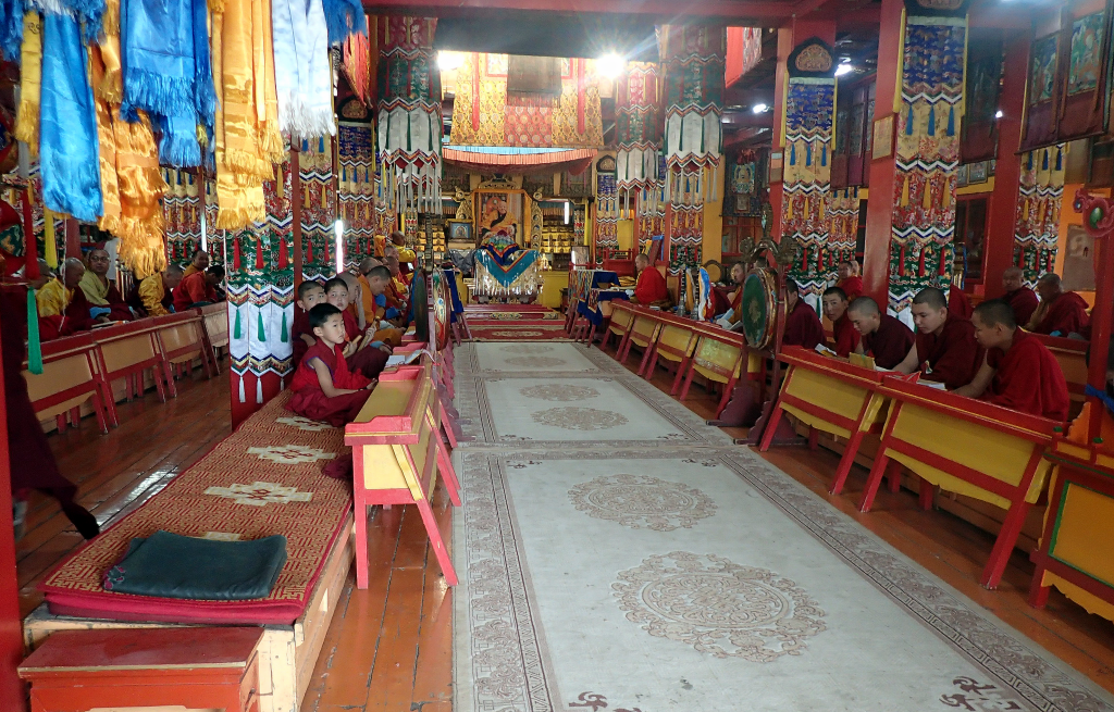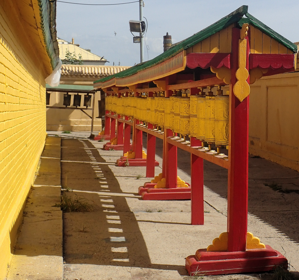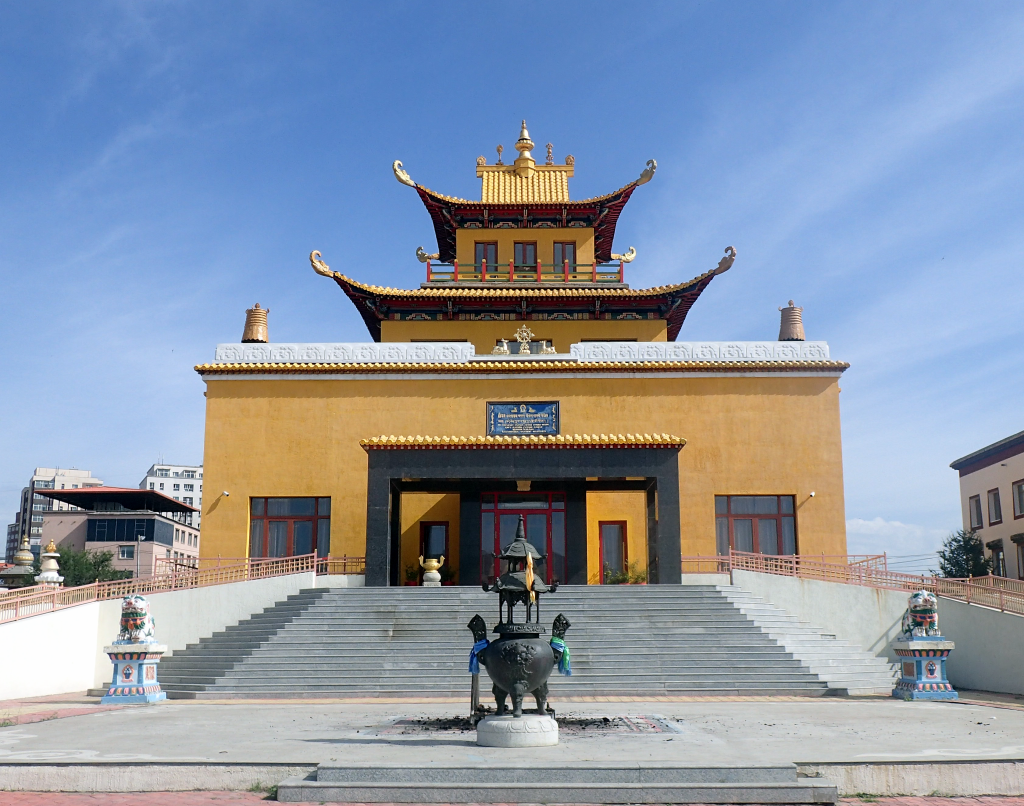 Nous passerons les deux prochains jour à déambuler dans le centre-ville d’Oulan-Bator. À visiter le marché Baylag Undraa, genre de souk vertical sur 8 étages, à manger un plat de ramen beaucoup trop copieux pour 3€, à visiter les temples du « Gandantegchenling » (d’après googlemap) avec leurs quatre gardiens peu commodes à l’entrée et finalement manger au Pizza Hut parce que bon, le cyrillique ça va bien cinq minutes. Nous découvrons finalement le groupe et notre guide le soir autour d’un plat typiquement mongol.