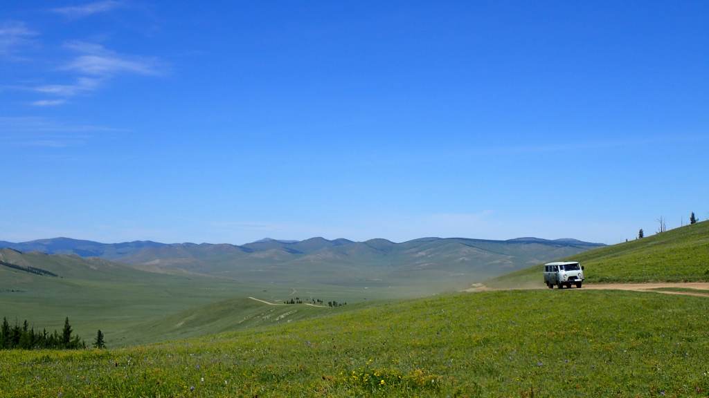Nous faisons une pause déjeuner dans un resto qui nous aura appris une chose : quand on est dans la pampa, on mange local. Les Khuushuurs, genre de beignets frits farcis à la viande, nous sont servis en dix minutes alors que les malheureux ayant commandé des pizzas les attendront pendant près de deux heures.